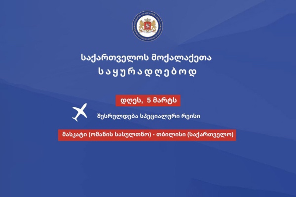 ახლო აღმოსავლეთის რეგიონში არსებული ვითარებიდან გამომდინარე, რიგი ქვეყნების საჰაერო სივრცის დახურვის გამო შექმნილი სამგზავრო შეფერხებების გათვალისწინებით, საქართველოს მოქალაქეებისთვის, რომელთა საქართვ...